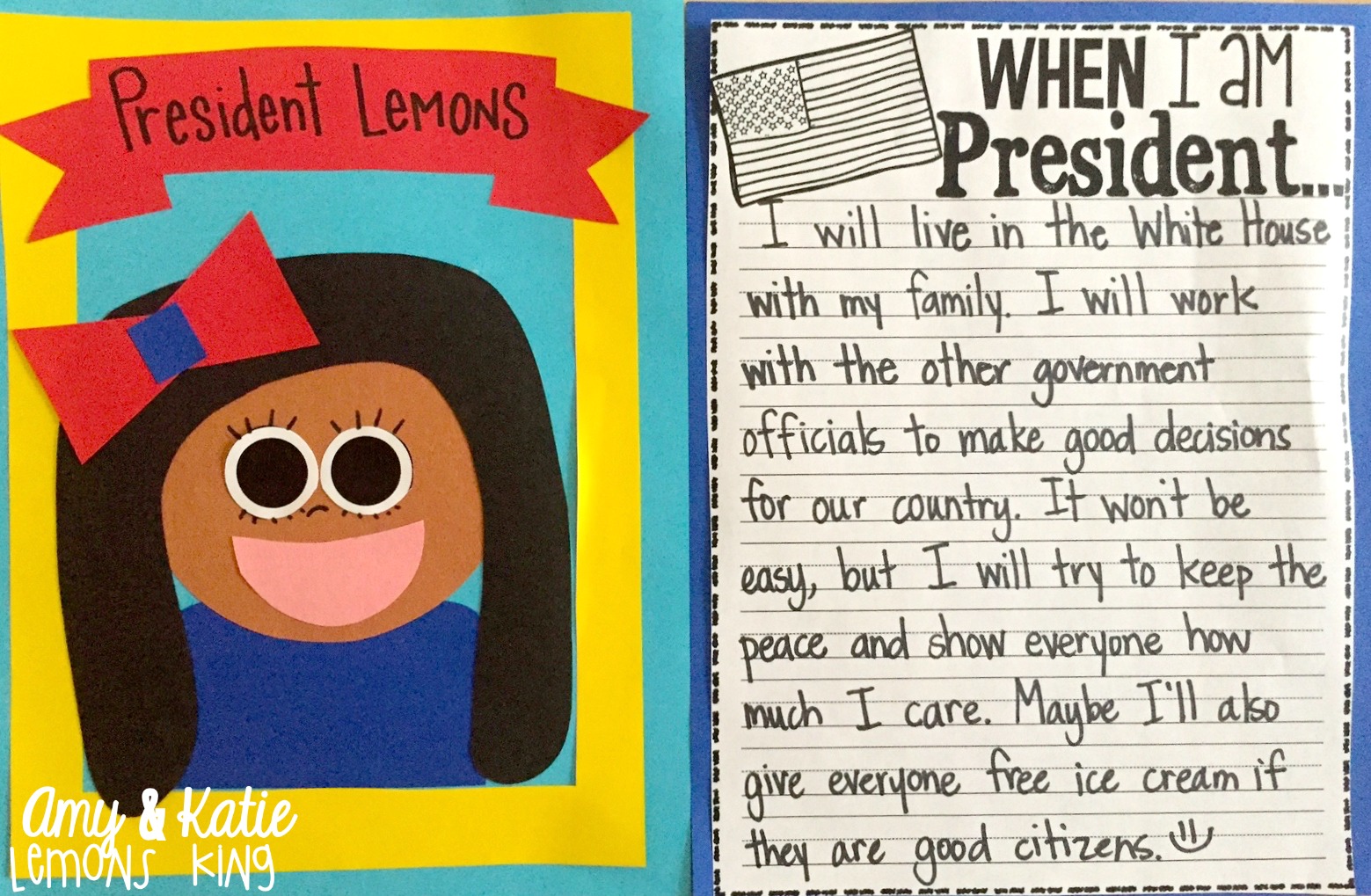 And as always  we have a craft and a directed drawing to display along side all the hard work!  I love hearing what the students will change when they are president!